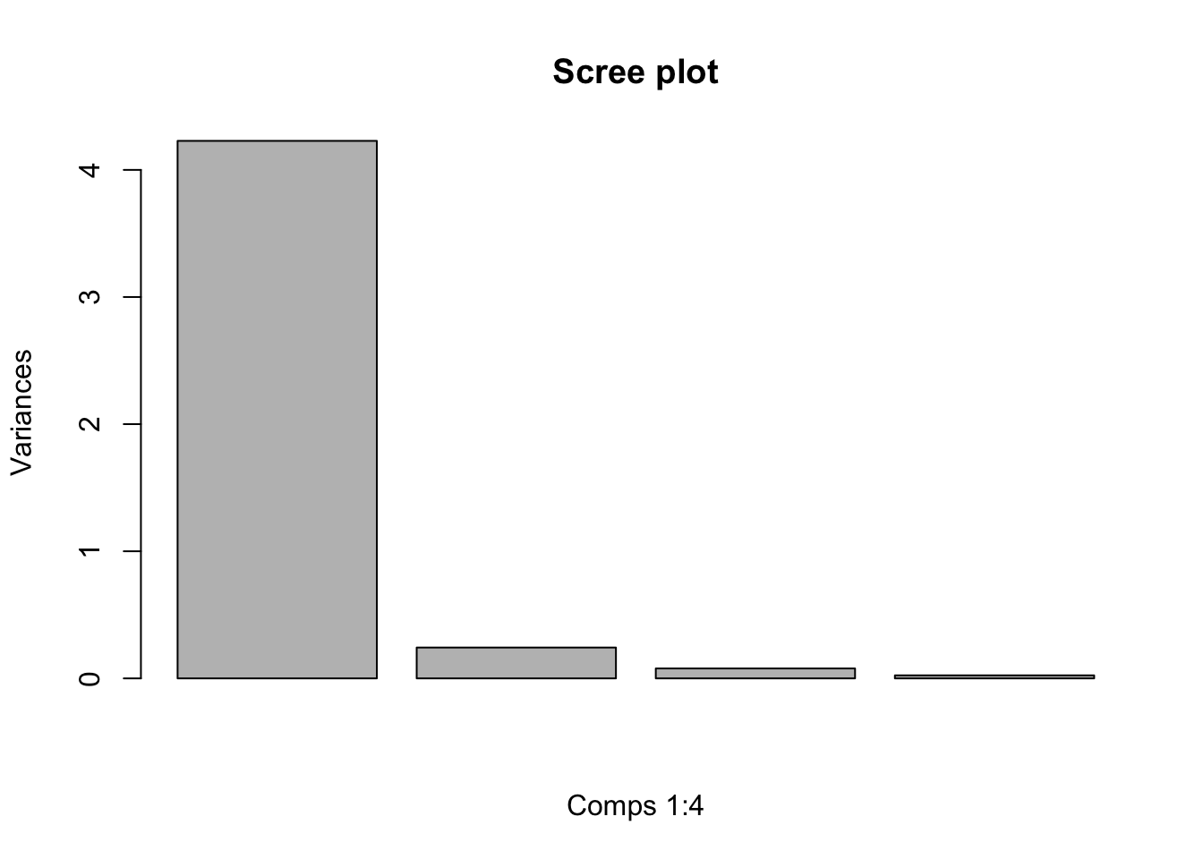 plot(fit, main = "Scree plot", xlab = "Comps 1:4")